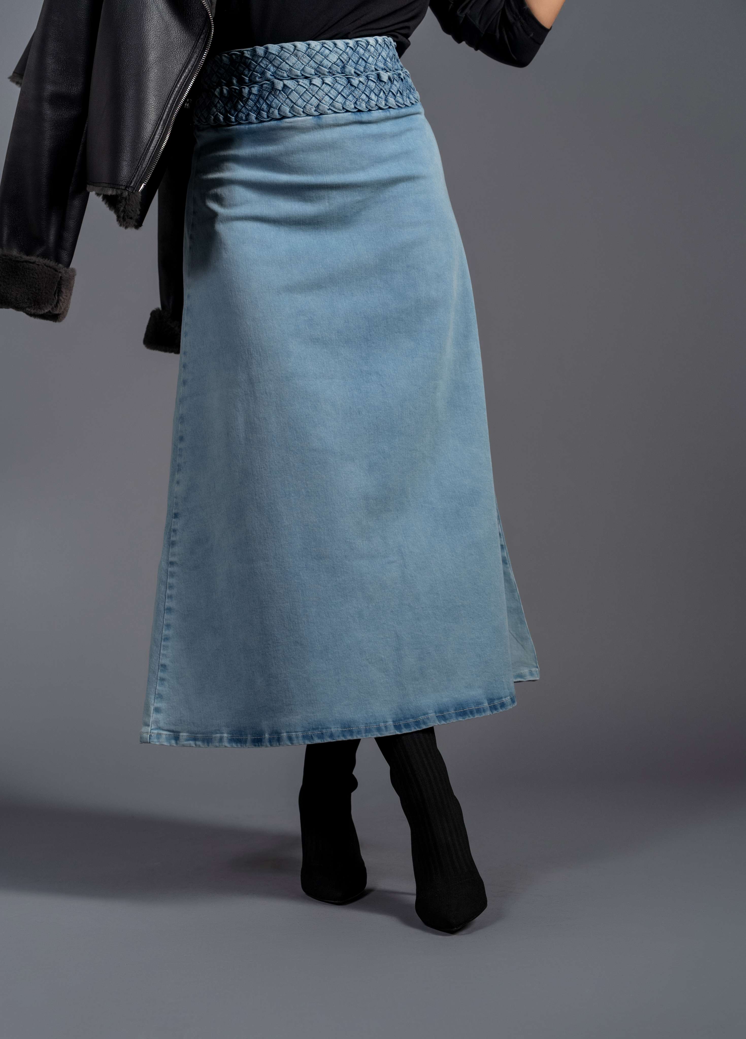 Elizabeth Highwaisted Braided Stretch Denim Skirt