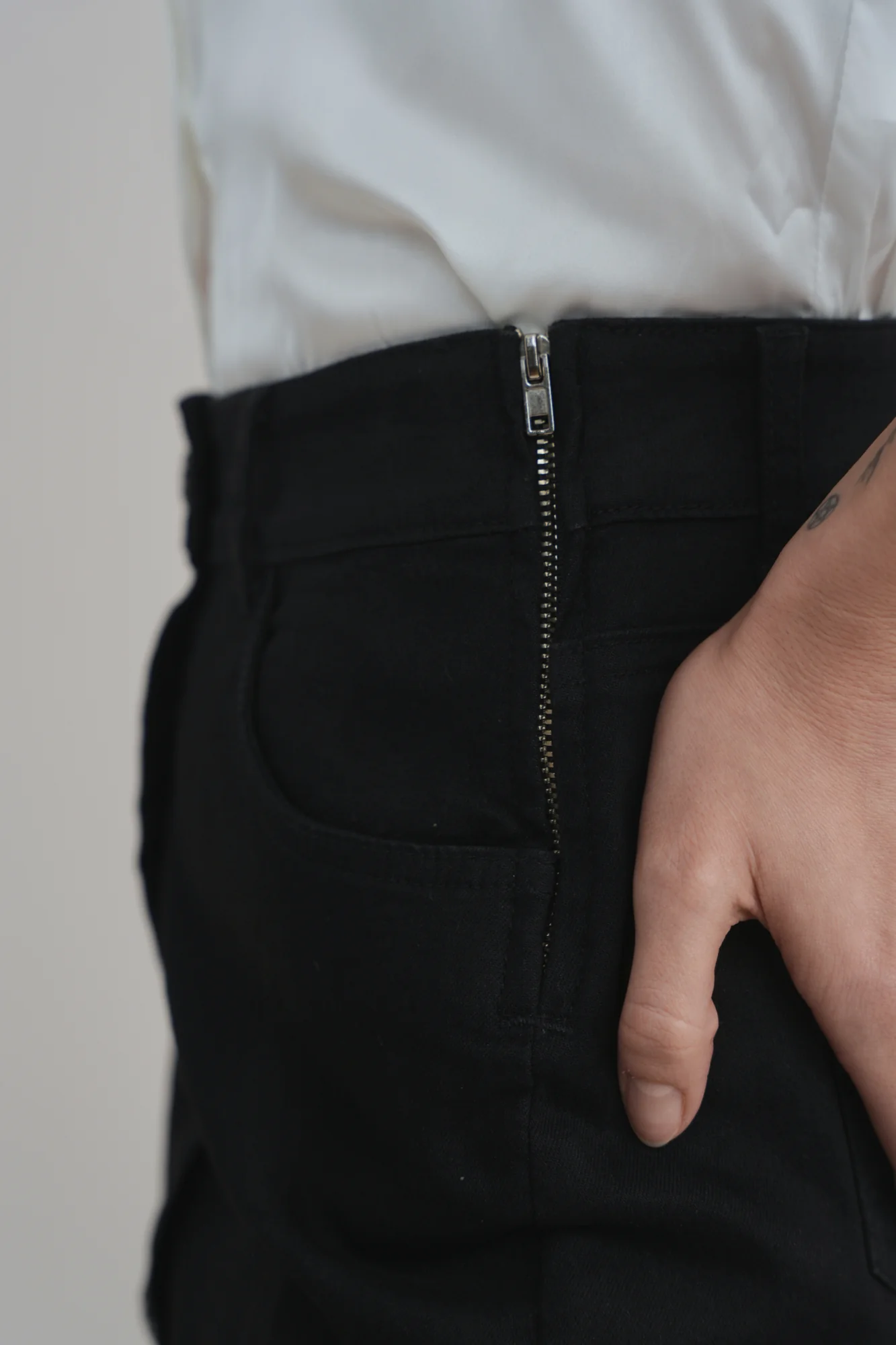 Crafted from rich black Peruvian Cotton stretch denim, the Black Diamond Skirt embodies understated power. Its silhouette holds form without rigidity, moving as you move: grounded, poised, unshaken. A side zipper ensures a seamless fit, while decorative buttons glint softly along the front, a quiet detail that symboliz